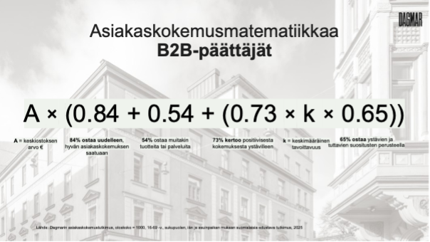 Asiakaskokemuksen vaikuttavuuden kaavan tunnusluvut B2B-kohderyhmässä
